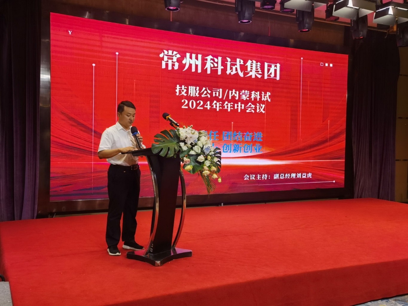 7月13日,常州科試技術(shù)服務有限公司2024年下半年工作會議在寧夏銀川順利召開,集團公司副總裁、技服公司總經(jīng)理關(guān)金學、副總裁顧祖全等公司主要領導及各運營部經(jīng)理、服務隊隊長共47人參加了會議。會議主要總結(jié)了上半年工作目標完成情況,安排部署下半年工作。會議由技服公司副總經(jīng)理劉益虎主持。