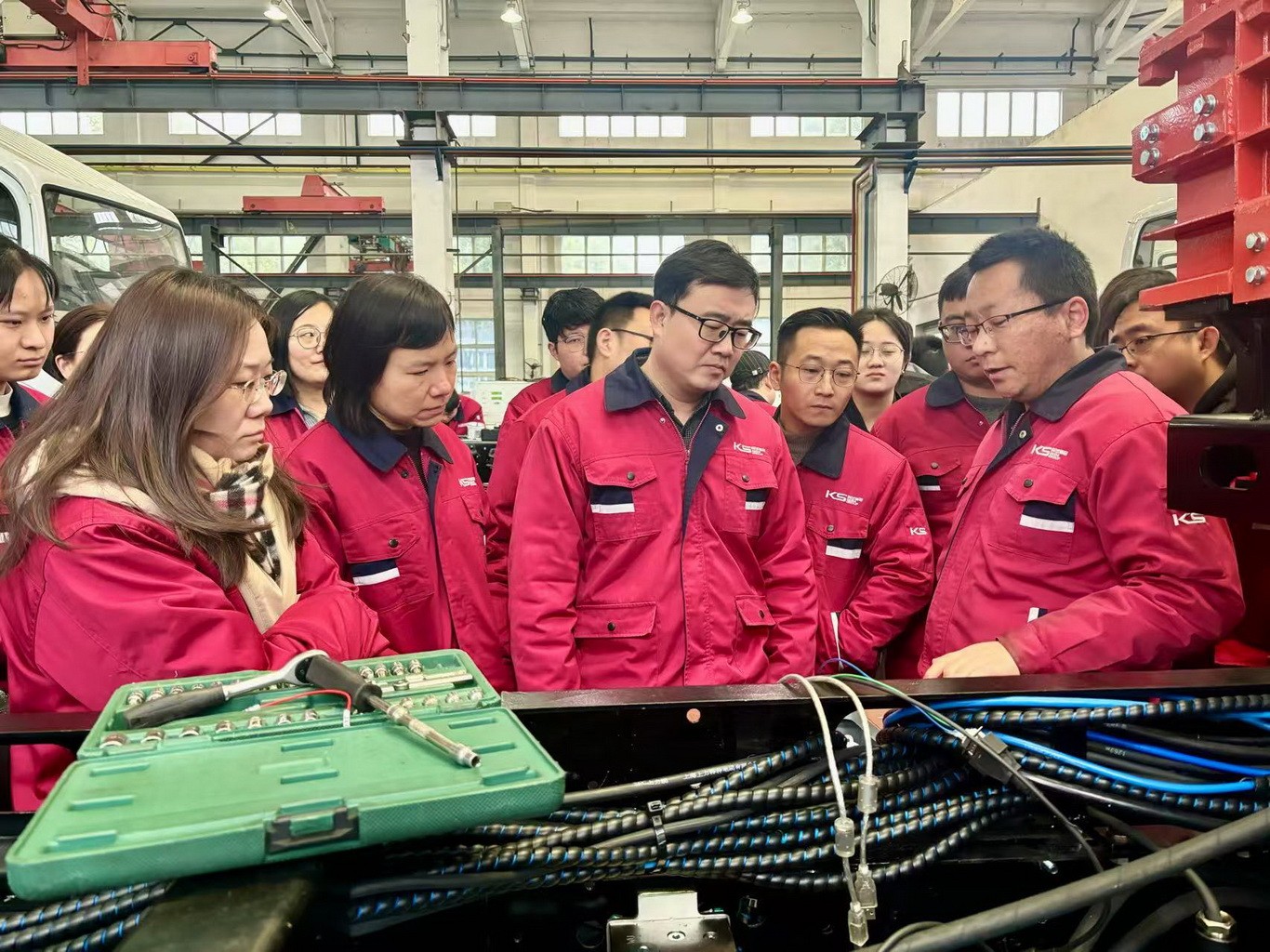 為強化市場攻堅實戰(zhàn)能力,培訓期間,全體參會人員深入車間生產一線,現場聆聽了產品實地講解,并積極踴躍試駕了科試集團新能源防爆車等產品,在機械轟鳴中感知了公司產品的卓越性能與核心競爭力。