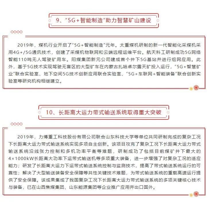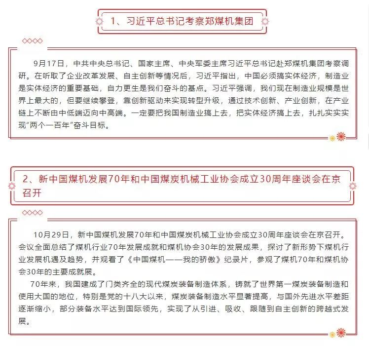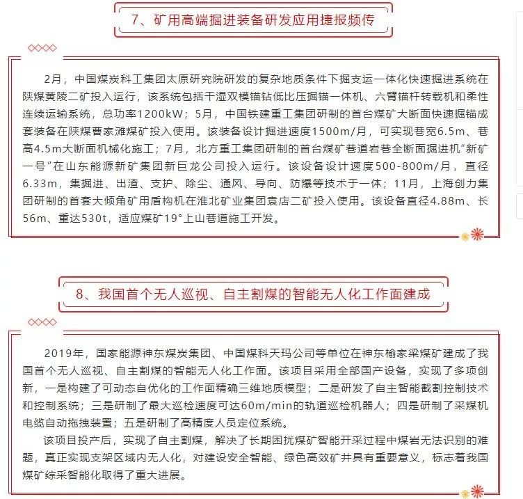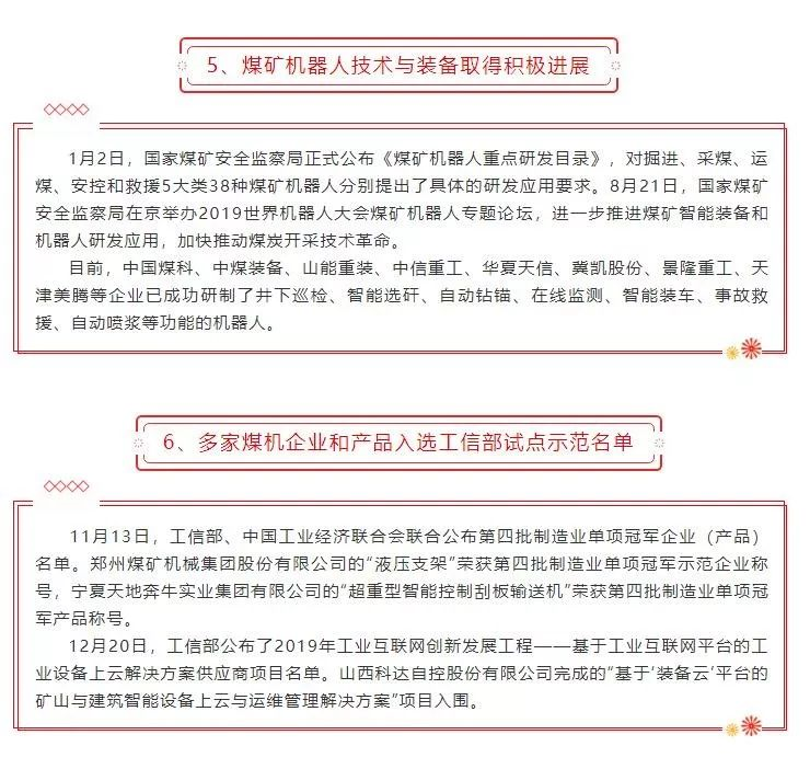 2019年度煤炭裝備制造業(yè)十大新聞