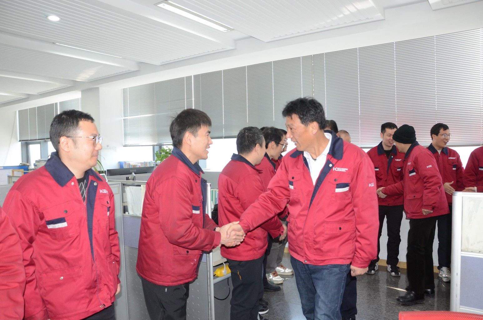 早上七點(diǎn)半,集團(tuán)副總裁王眉林、關(guān)金學(xué)、顧祖全,集團(tuán)董事長助理姜昱,攜各經(jīng)理班子及部門管理者齊聚公司門口,以飽滿的熱情迎接并恭賀每一位員工的到來。隨后,領(lǐng)導(dǎo)們深入各車間、部門,向準(zhǔn)時(shí)到崗、精神煥發(fā)的員工們拜年,派發(fā)開門紅包并送上新年祝福和希望。并代表集團(tuán)公司衷心感謝全體員工過去一年的辛勤付出,激勵(lì)大家在新的一年里,繼續(xù)秉持“敢擔(dān)責(zé)任、團(tuán)結(jié)奮進(jìn)、客戶至上、創(chuàng)新創(chuàng)業(yè)”的企業(yè)精神,緊緊圍繞“創(chuàng)新轉(zhuǎn)型、提質(zhì)增效、做強(qiáng)品牌”的總體工作要求,以“開工即滿弓”的氣勢(shì)、“開工即開干”的姿態(tài),奮勇拼搏,為實(shí)現(xiàn)公司2025年目標(biāo)而努力奮斗。